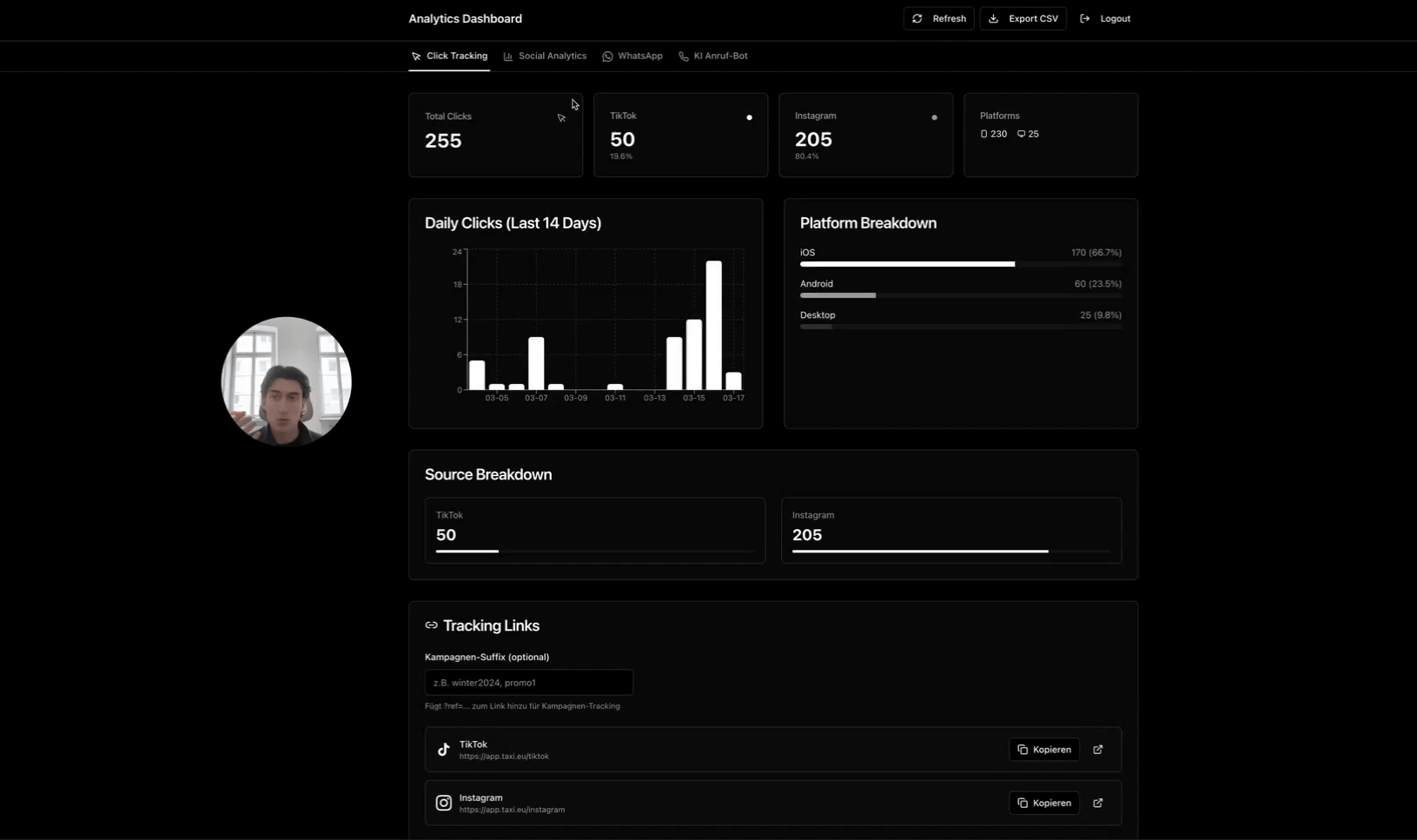 Wir bieten unseren Kunden völlige Transparenz durch unsere neue Tracking-Software. Nun ist es möglich genau zu analysieren, wie viele Zuschauer zu Kunden konvertiert wurden, die Bestell-App heruntergeladen haben oder Whatsapp nutzen.